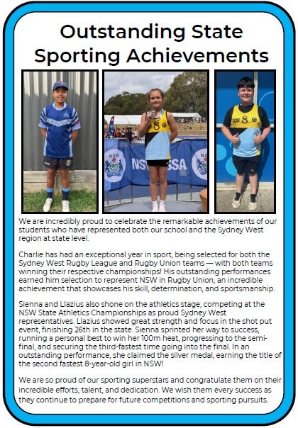 Throughout the year at Ropes Crossing Public School, we have participated in a wide range of sporting activities and have celebrated the excellent achievements of out students.